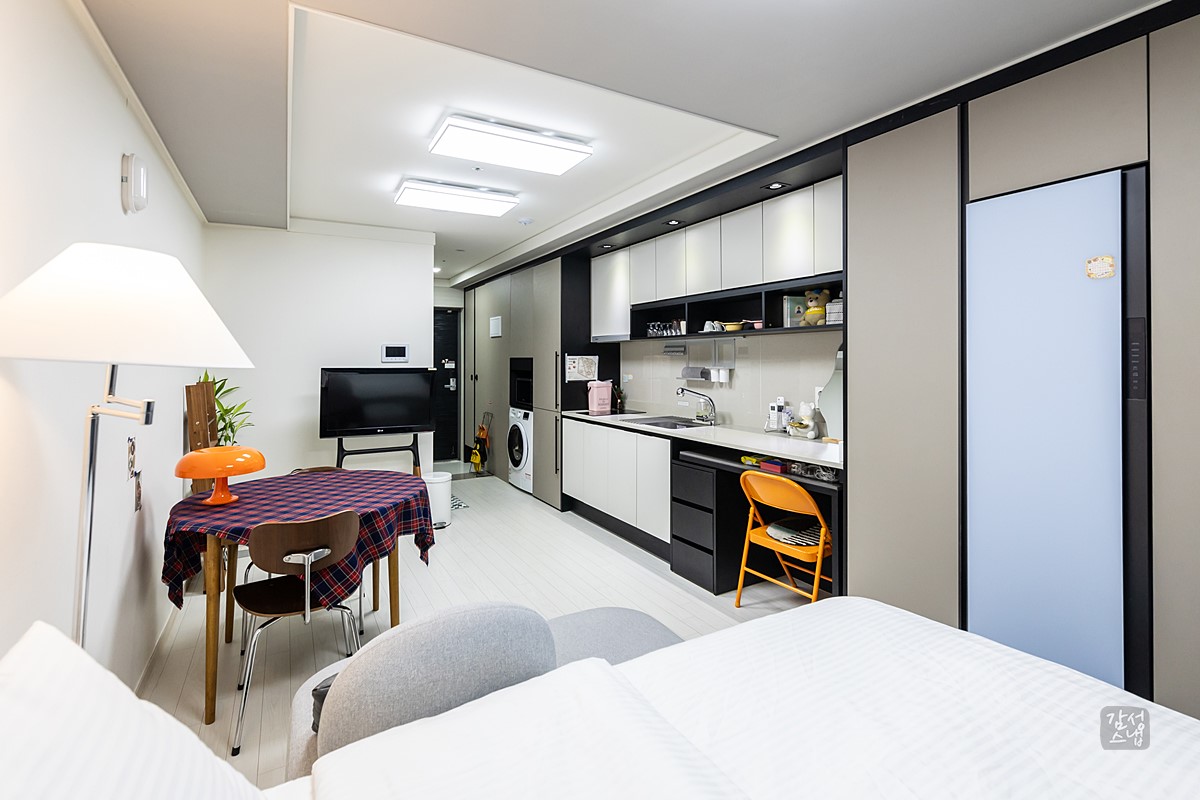 인테리어 촬영시 광각렌즈를 이용해 최대한 넓게 보이게 촬영해드리며
